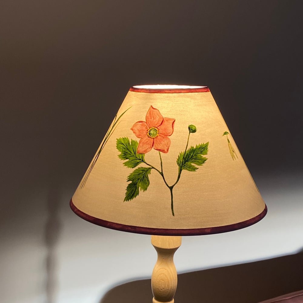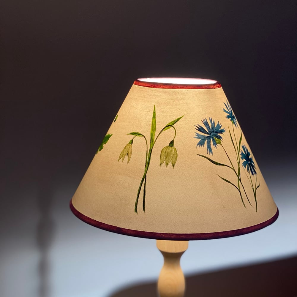 Each shade is individually painted, drawing inspiration from seasonal flowers. Including, Anemone, fritillary, snowdrops & cornflowers. The hand-finished nature of the piece gives it a unique character, while the cream background keeps the overall look light and versatile. When lit, the shade glows warmly, subtly showing the tones and bringing out the detail of the artwork.